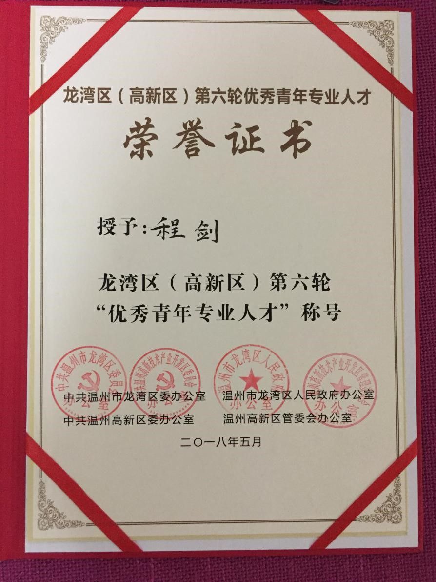 祝賀方圓儀器副總工程師程劍先生榮獲溫州市龍灣區(qū)(高新區(qū))第六輪“優(yōu)秀青年專業(yè)人才”稱號